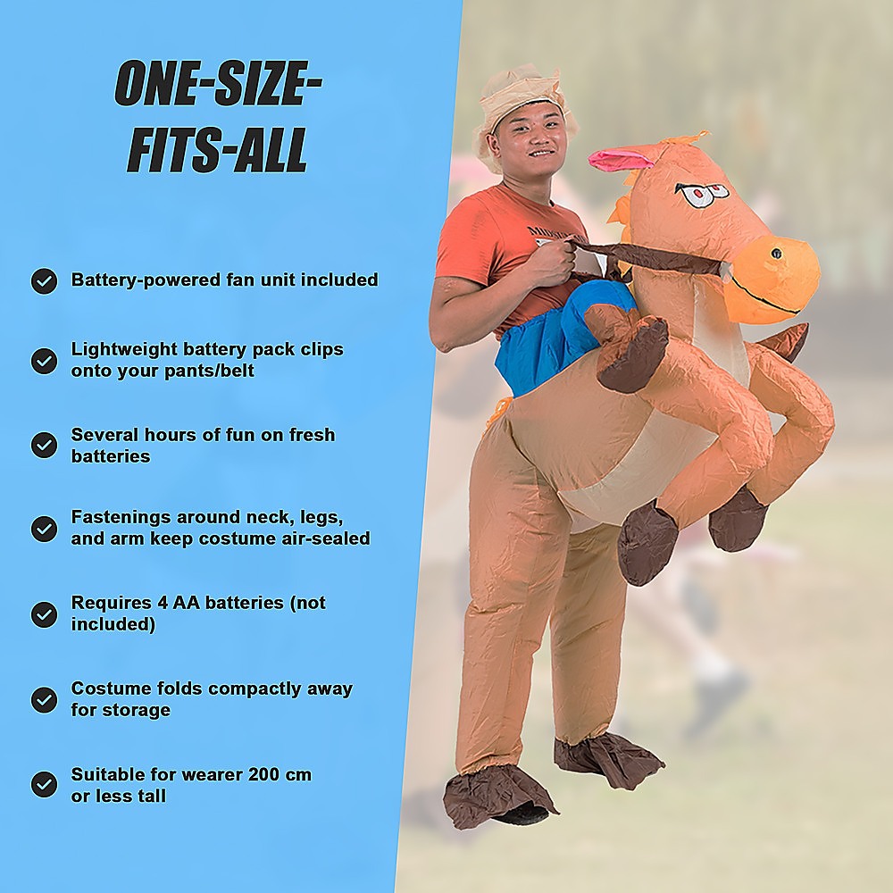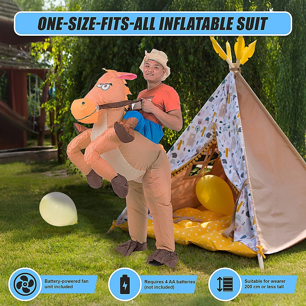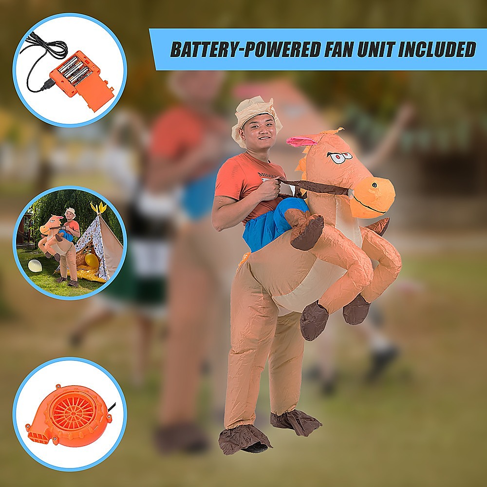 Howdy, partner! Rustle up some fun for your next get-together with our Cowboy Inflatable Fan-Operated Costume. You'll ride to the party in style, but you won't break a sweat courtesy of the costume's super-lightweight material.