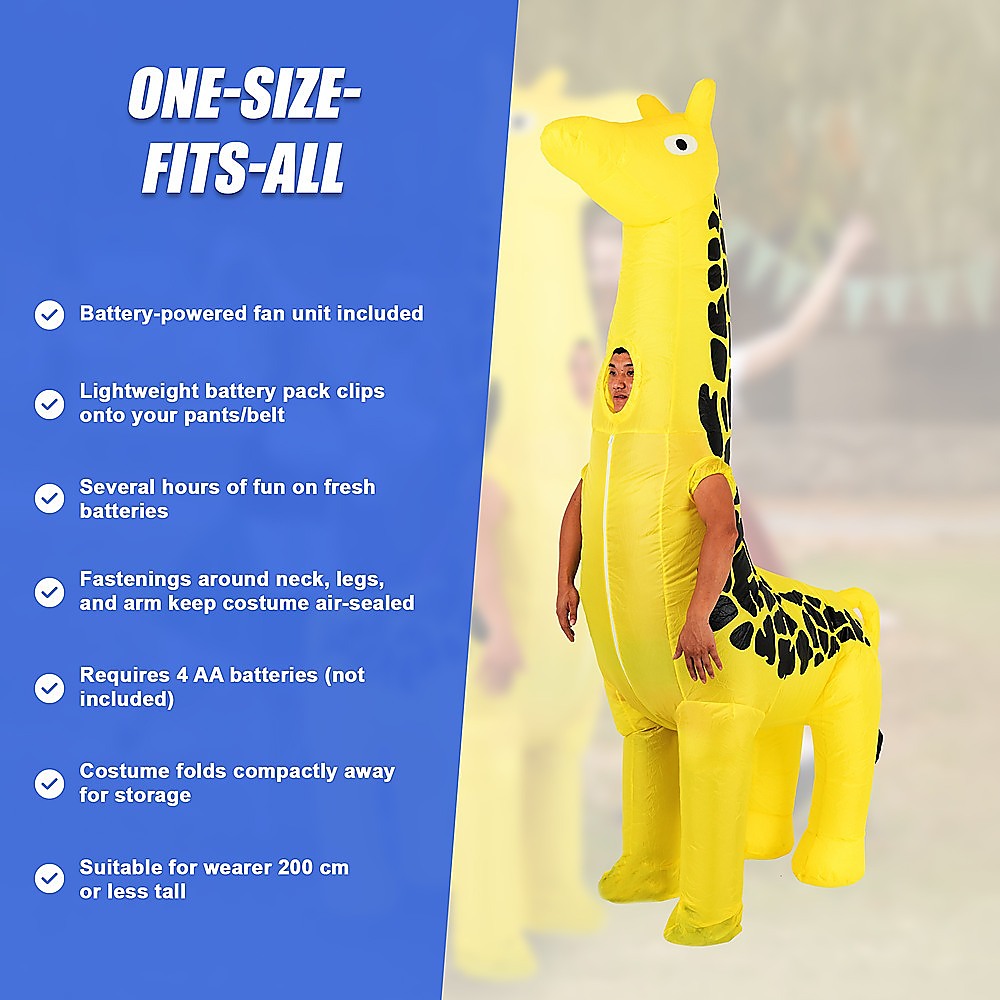 Stand out from the crowd with our Giraffe Design Inflatable Fan-Operated Costume. The size of your costume will be impressive, but your effort in hauling it around will not be.
