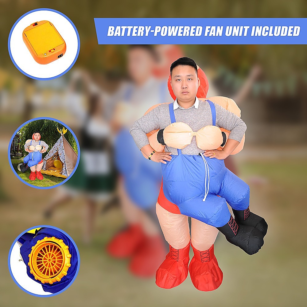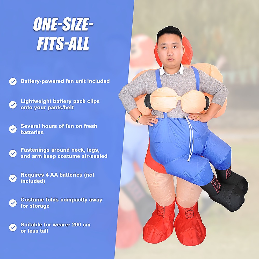 Bring some real fun and surprises to the next party you attend. Crash the party wearing our Inflatable Fan-Operated Wrestler Costume. You won"t have to do any work - this wrestler will literally carry you! You"ll be comfortable in this costume made of feather-light material. You"ll be the center of attention and every party guest will be delighted with this comical, bright and unforgettable costume!